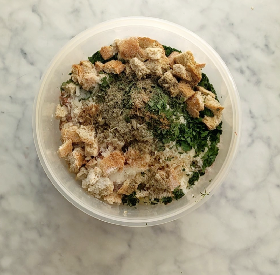 Traditionally this recipe uses bread soaked in milk. Since this is a low carb recipe, you can choose to leave out the bread or you can use any low carb bread of your choice. The bread does help the filling stick together, but it is not necessary. For keto bread, our favorite is the Carbonaut white bread. You can soak this bread in water or heavy cream for the filling.
