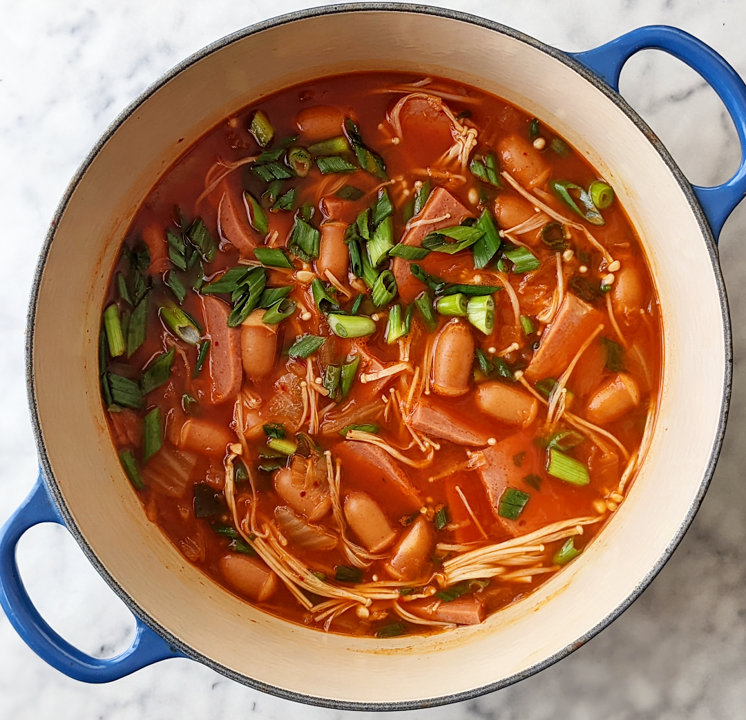 I’ll start this off by noting that this recipe is a hybrid between a Kimchi Jjigae and Korean Army Stew. In this recipe, we use more kimchi than what is normally used in the Army Stew. The amount of kimchi used, is similar to what you’d see in a kimchi jjigae. This makes the stew bursting with flavor and full of nutrition (kimchi is loaded with probiotics)! Kimchi keeps the carb content low while adding more substance to the stew.